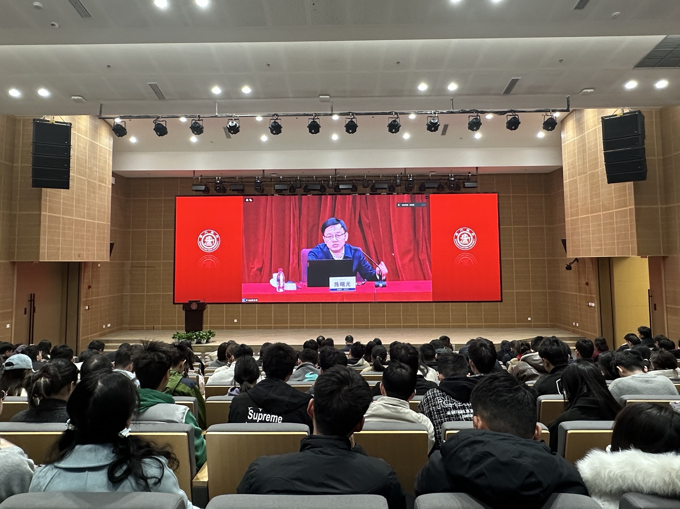 为深入学习贯彻习近平新时代中国特色社会主义思想,进一步深化党的创新理论武装,12月10日,女王调教 举办2025年秋季学期党员基本培训第二次集中大课,组织观看由中共中央党校科研部主任陈曙光教授主讲的《深入学习贯彻习近平新时代中国特色社会主义思想》视频报告。女王调教 全体师生党员在绿色环境楼100号报告厅参加学习。校党委副书记、副校长胡薇薇主持党课。