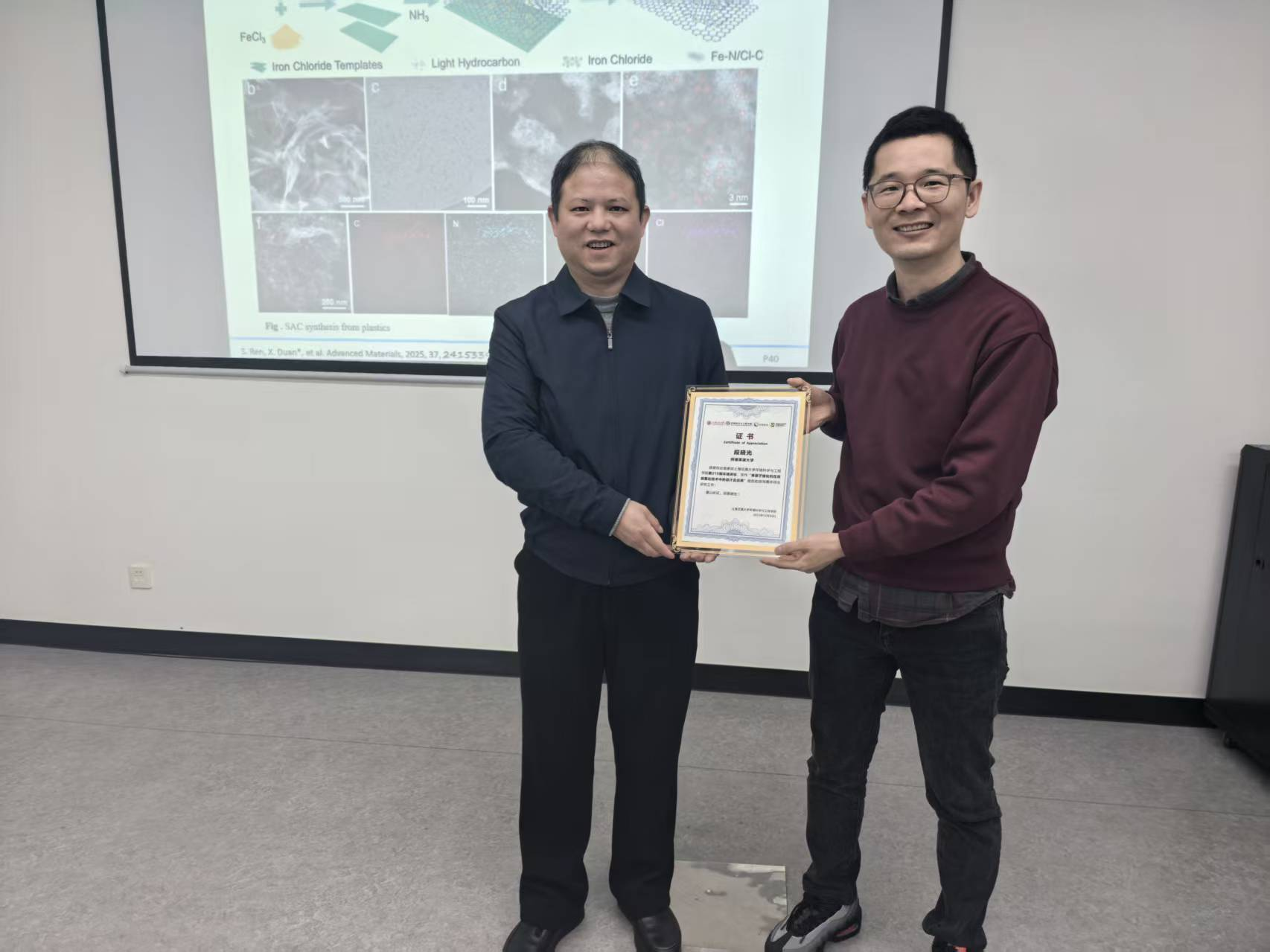 2025年12月26日,应女王调教 龙明策研究员邀请,澳大利亚阿德莱德大学化学工程女王调教 段晓光教授做客第219期女王调教讲坛,在绿色环境楼200会议室与交大师生进行学术交流,带来题为“单原子催化剂在高级氧化技术中的设计及应用”的精彩报告。此次报告由龙明策主持。