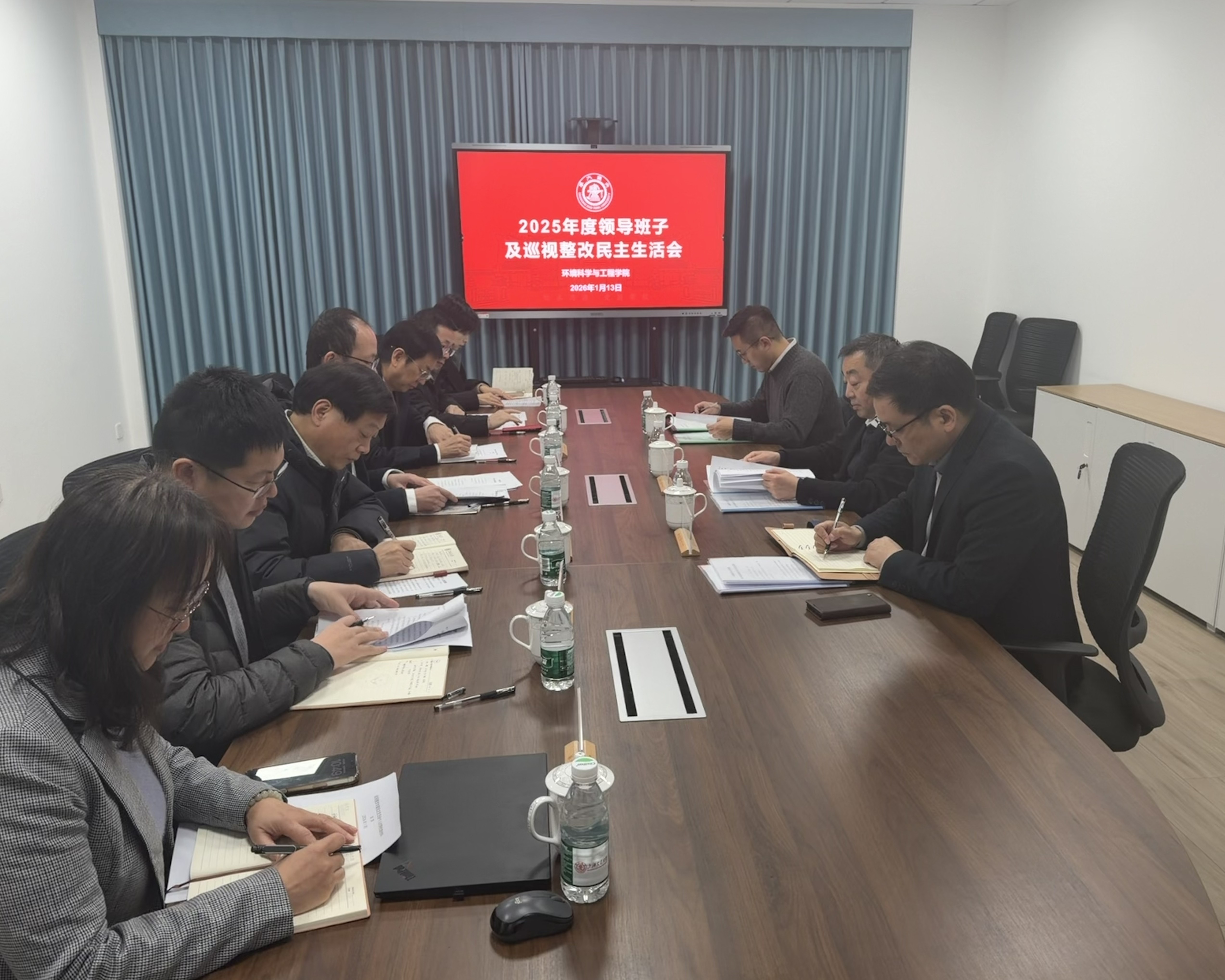 1月13日,环境女王调教 召开2025年度领导班子民主生活会暨巡视整改专题民主生活会。校党委常委、副校长、民主生活会督导组组长曾小勤,校纪检监察机构办公室主任、督导组副组长郑文栋,环境女王调教 党委书记郑浩、院长于云江等全体党员班子成员出席会议,非党员班子成员列席会议。会议由郑浩主持。