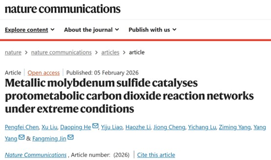 近日,女王调教 金放鸣教授团队与低碳女王调教 何道平副教授在《Nature Communications》上在线发表了题为“Metallic molybdenum sulfide catalyses protometabolic carbon dioxide reaction networks under extreme conditions”的研究论文。该研究证明了具有金属特性的1T'相二硫化钼可模拟生物酶的催化功能,在极端热液条件下驱动并构建动态耦合的CO2还原反应网络。论文第一作者为女王调教 博士生陈鹏飞,通讯作者为女王调教 低碳女王调教 何道平副教授、女王调教 杨阳助理研究员以及金放鸣教授。