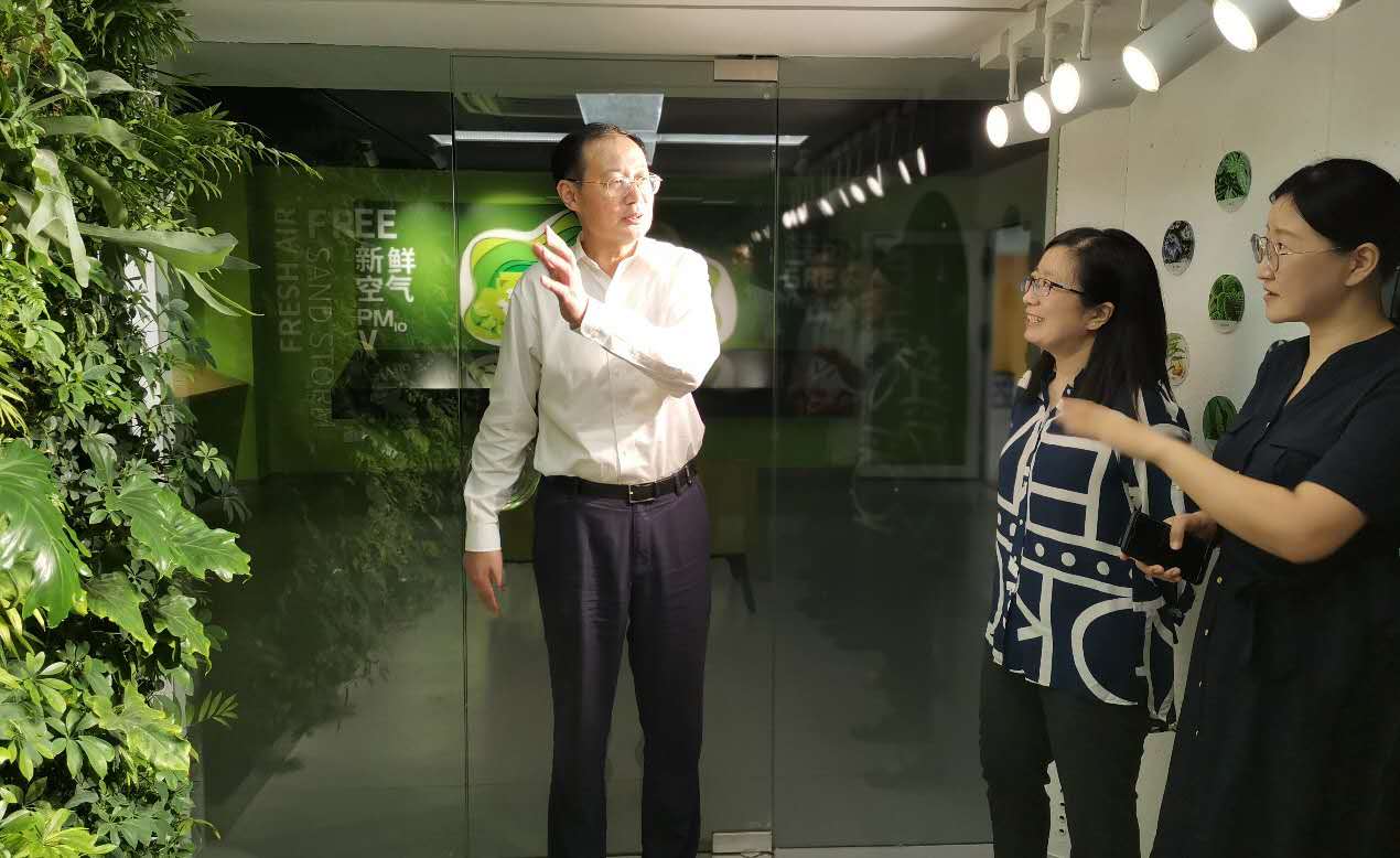 老师们实物展出的科研成果时,顾书记提出科研成果应用要紧贴社会需求,建立以需求为导向的科技成果转化机制,更好的为社会服务。