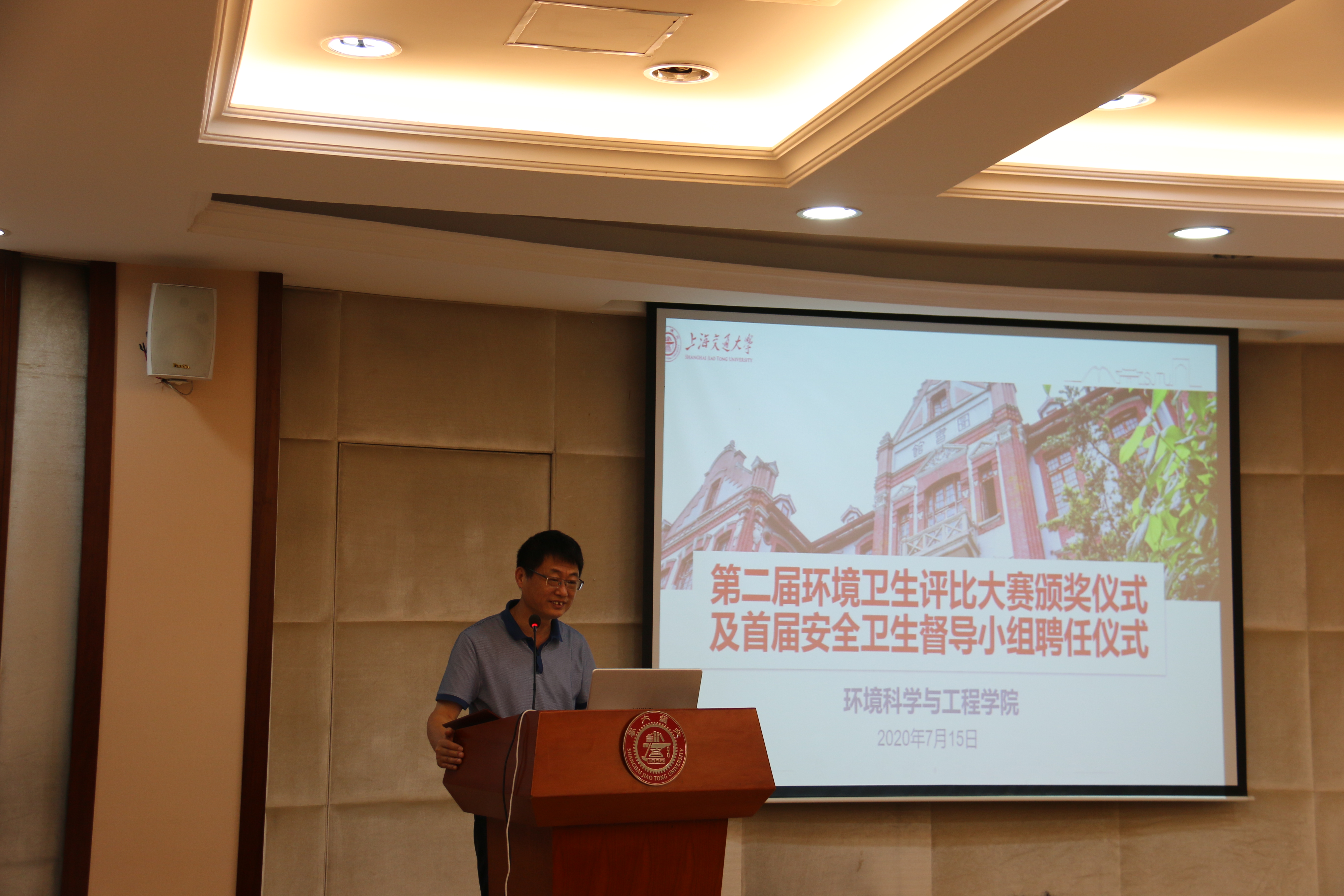 第二届环境卫生评比大赛颁奖仪式及首届安全卫生督导小组聘任仪式在环境科学楼二楼报告厅举行,女王调教