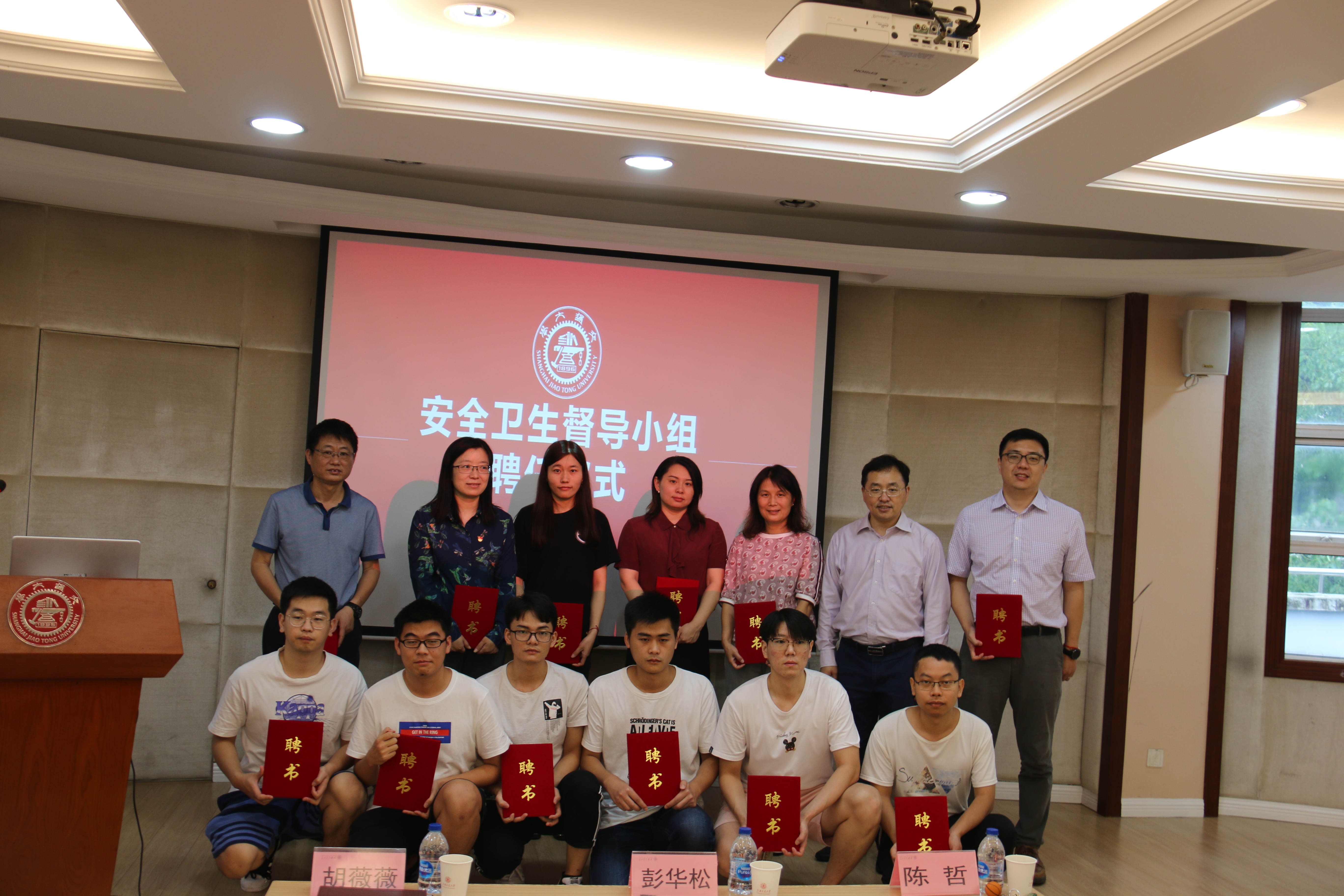特试行成立首届安全卫生督导小组,并举行聘任仪式。胡薇薇宣读首届实验室安全卫生督导小组成立及任命通知,彭华松为小组成员代表颁发聘书。