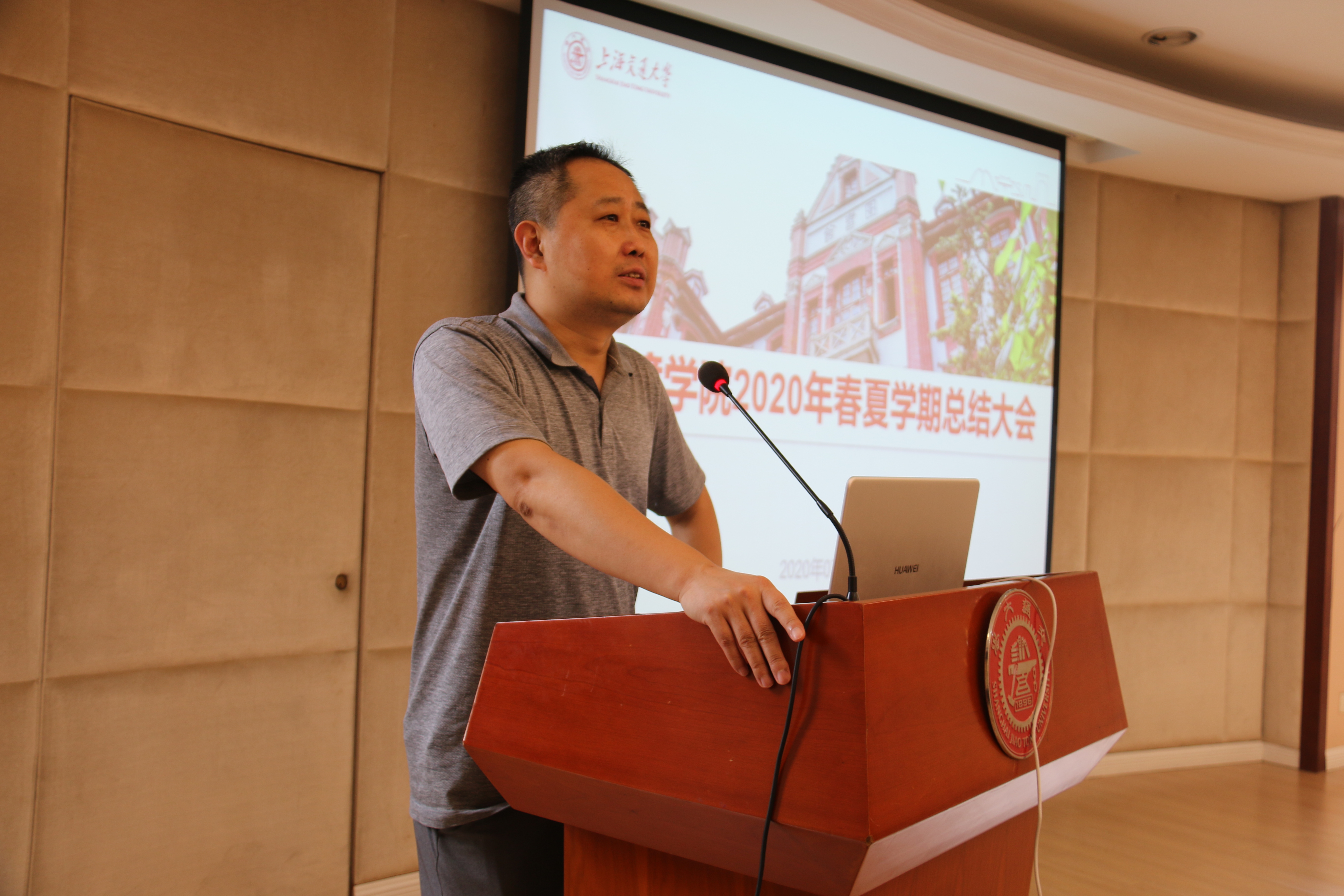 副院长刘萍从在线教学、招生考核、基地建设等方面总结2020年春夏学期教学相关工作,并向与会教职工传达了“女王调教